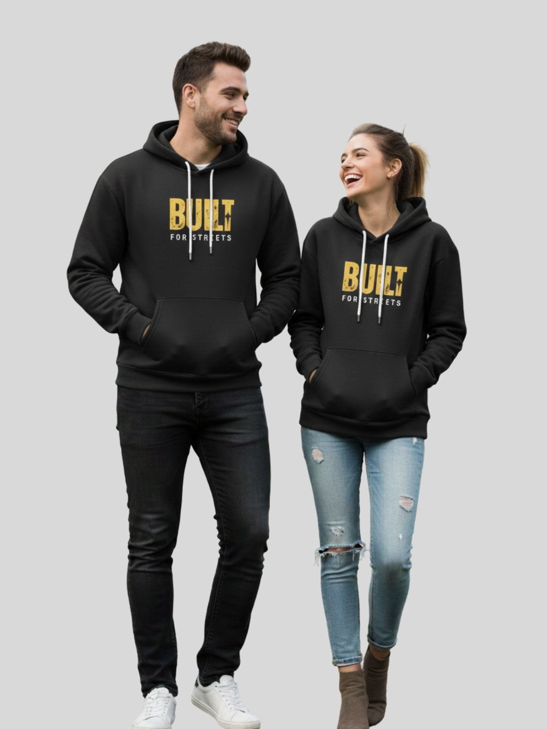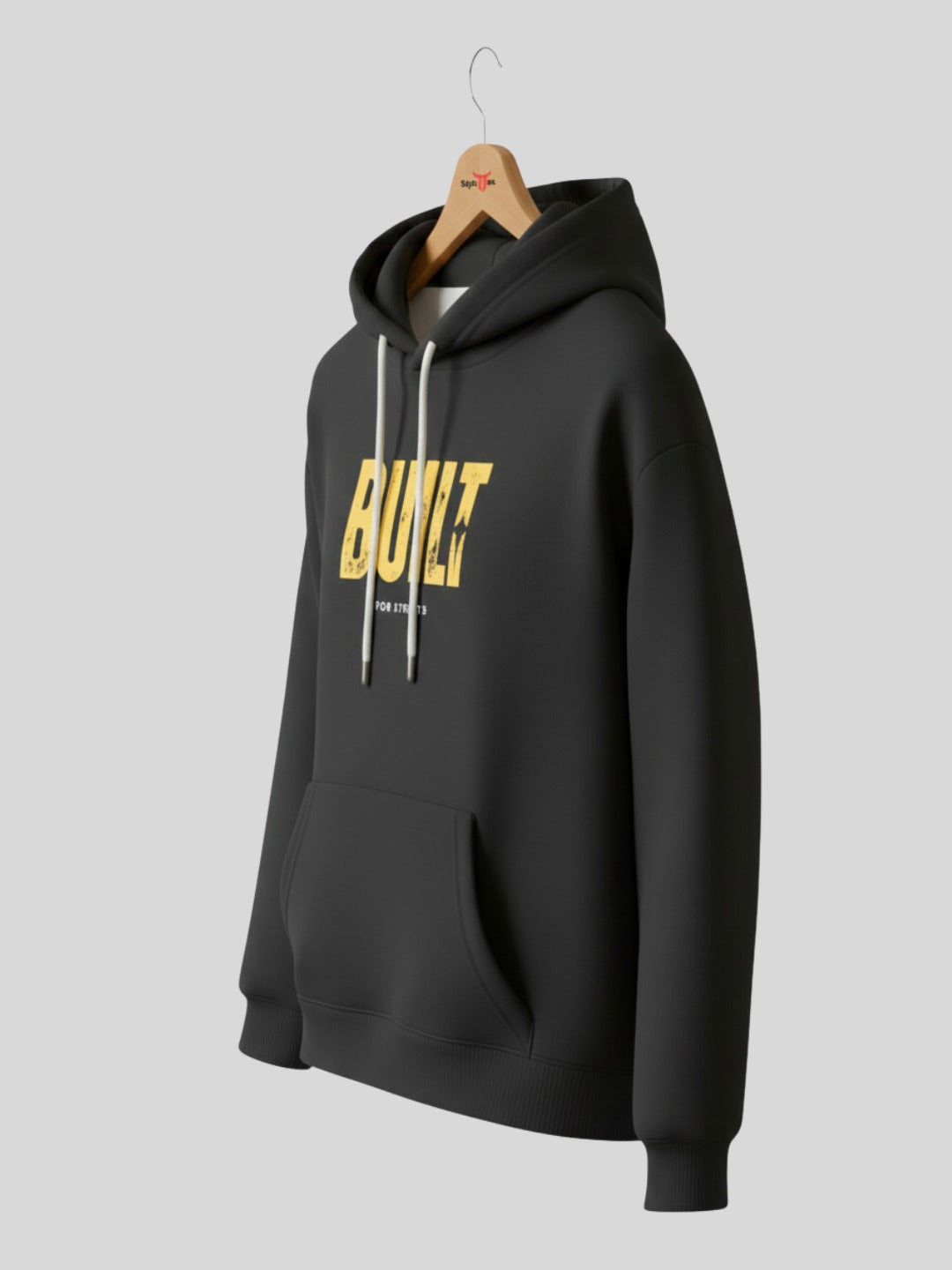 Showcase your power and confidence with this bold unisex regular-fit hoodie from Styleox. Designed in a sleek jet-black shade, it features a rugged “BUILT – For Strength” typography print in striking yellow, giving it a strong athletic and streetwear vibe. Made from a soft and durable cotton-blend fabric, this hoodie offers exceptional comfort, warmth, and everyday wearability—perfect for workouts, gym sessions, casual outings, or winter layering.